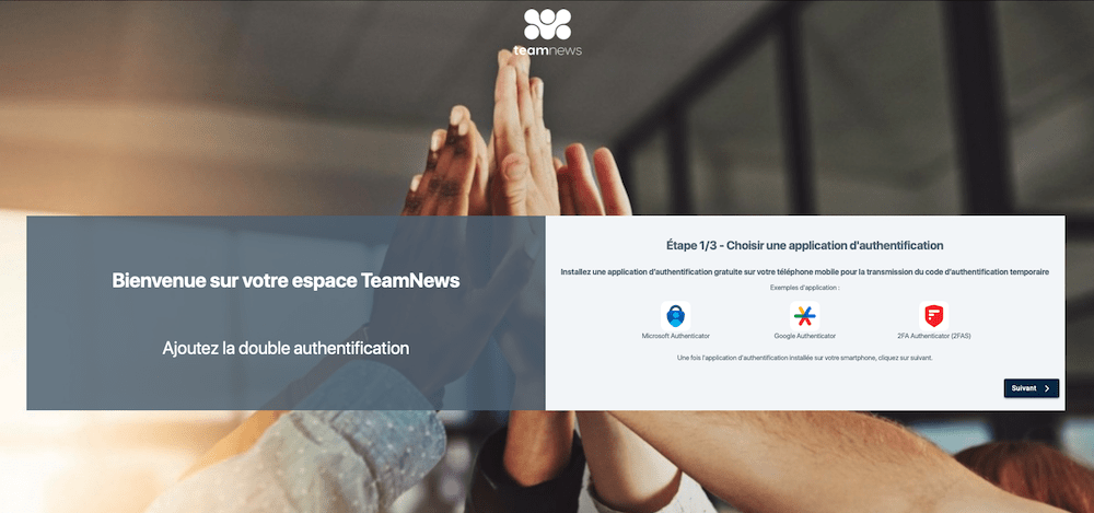 Si vous avez déjà une application de double authentification installée sur votre smartphone, passez cette étape et cliquez directement sur Suivant.