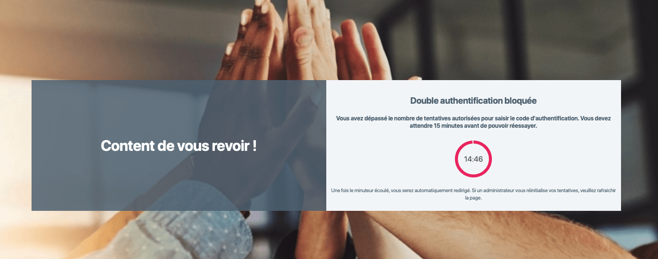 À l’issue de la 3ème tentative erronée votre accès sera bloqué pendant 15 minutes pour protéger votre compte des essais malveillants.