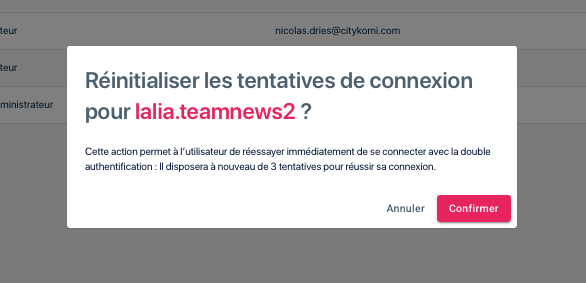 Réinitialiser les tentatives de connexion d’un utilisateur
