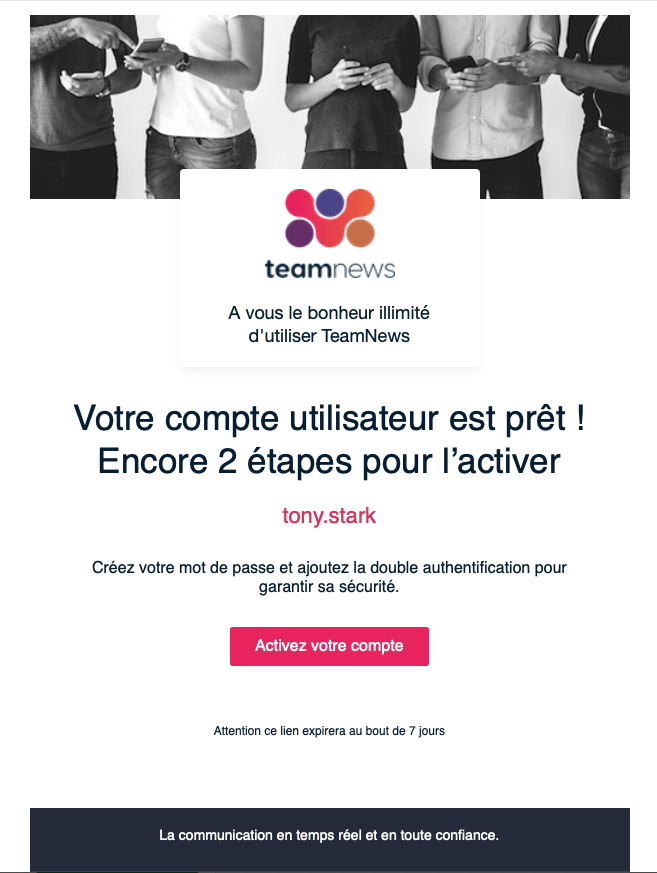 E-mail reçu par un nouvel utilisateur
